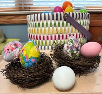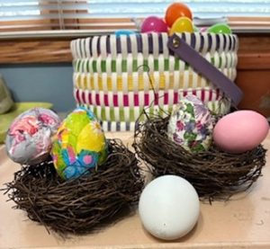 2026-03-26 Craft: Decoupaged Easter Eggs & Nests.